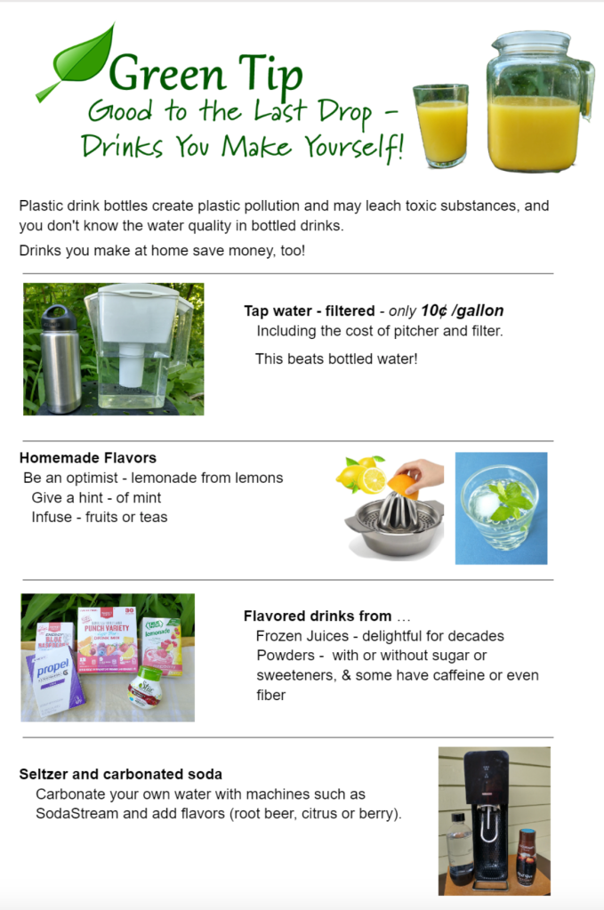Here are other ideas from the Dover Plastic Reduction Group, but do pay attention to the amount of sugar in any frozen juices and powdered drink mixes.
